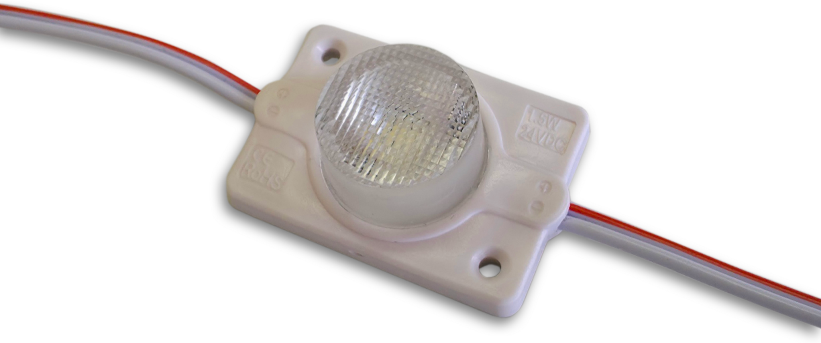 Sehr homogene Ausleuchtung bei seitlicher Einstrahlung bis zu einer Höhe von 130cm (90mm Bautiefe) ca. 12 Module pro Laufmeter. 20 Stück vorverkabelt, das ist auch das Limit pro Zuleitung. Die Module sind in Leuchtkästen sowohl im Innen als auch im Aussenbereich einsetzbar.