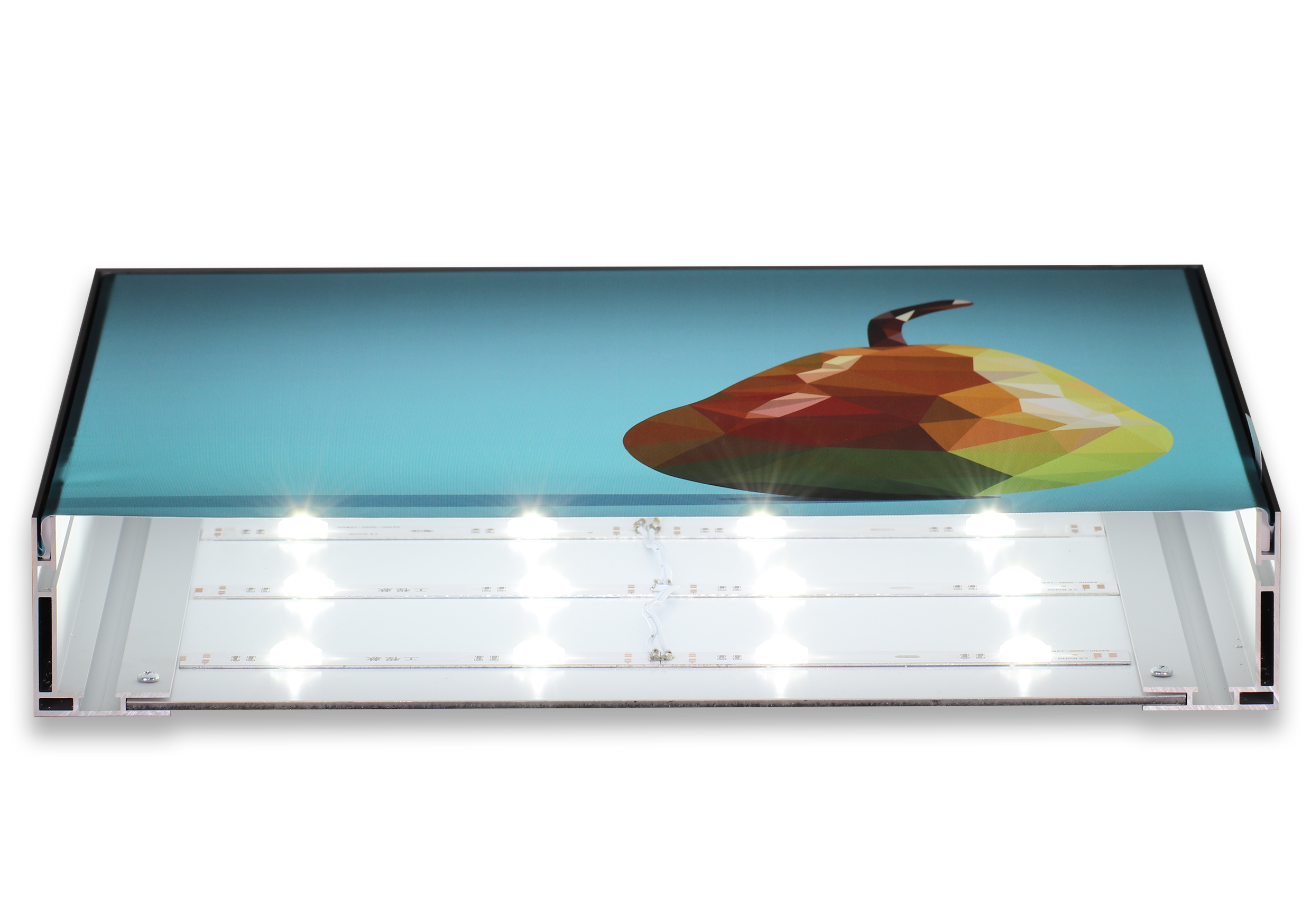 Einstrahltiefe 65mm — geeignet für 1,5W LED-Module oder Flächen LED bei größeren Formaten. (LED-Lichtfarben von 3000K bis 6500K verfügbar)