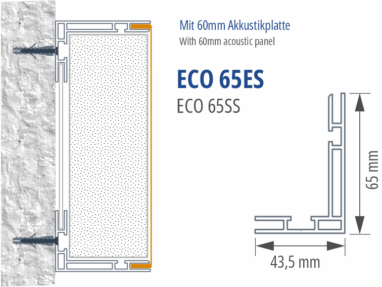 Ja. Das Eco 65es kann die Akustik Platte 60 aufnehmen und funktioniert als Akustikspannrahmen für Schallabsorption.