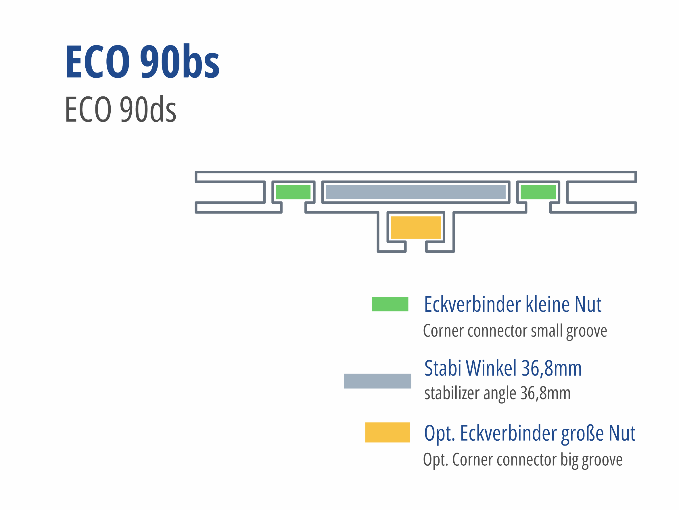 90 mm schlankes Profil zur Herstellung beidseitig leuchtender Anwendungen. Sofern eine der beiden Rahmenseiten ca. 120 cm nicht überschreitet, werden über die Zarge gute Ausleuchtungsergebnisse erzielt. Dank der Verstrebungsaufnahme lassen sich auch großformatige Anwendungen wie Deckenkränze effizient realisieren – besonders vorteilhaft in Kombination mit unserem Innen- und Außeneckprofil. Mit unserem Plexiadapter kann beidseitig anstelle von Spanntuch mit Gummilippe auch Plattenmaterial bis zu 5 mm Stärke eingesetzt werden.