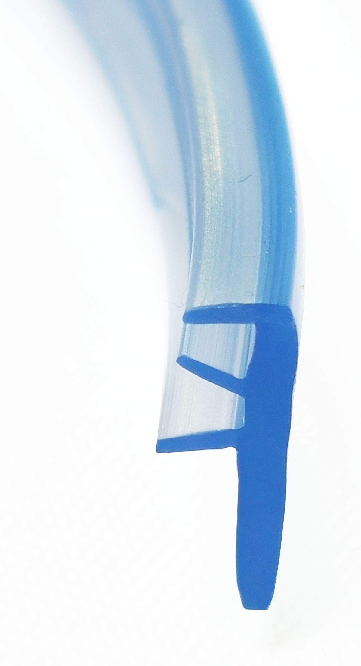 Keder PVC transparent, mit neuem F-Querschnitt. Der Keder wird mit den Fahnen nach außen in die Flachbandnut eingesetzt. Das unkonfektionierte Spanntuch kann dann mit einer Rundspachtel eingedrückt werden. Rolle 150 lfm