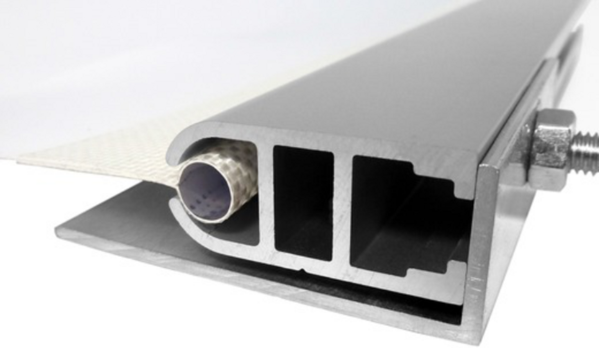 Auf einer Seite das gekederte Spanntuch, auf der anderen Seite eine Standard M6 Maschinenschraube.