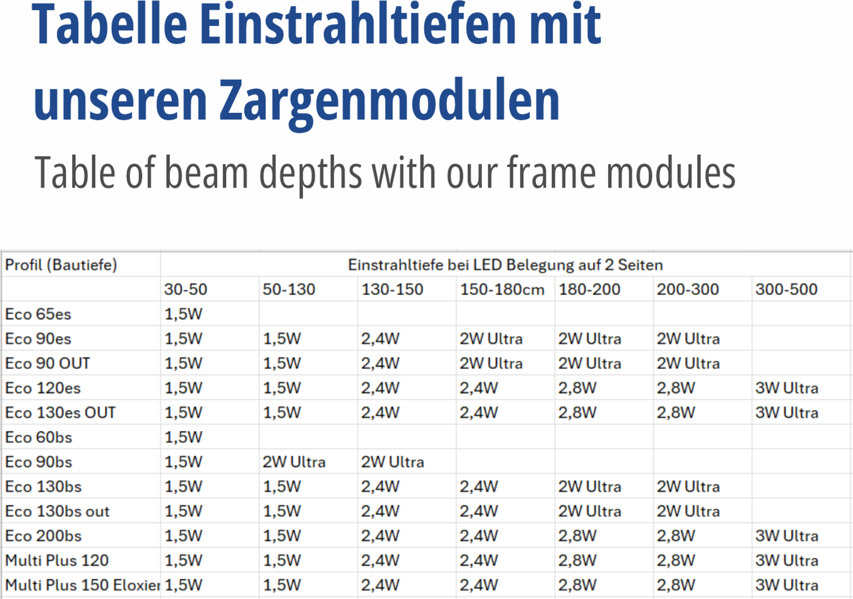 Das 24V LED-Zargenmodul bietet 2,8 W je Linse und eine Lichtleistung von 200 Lumen pro Modul bei einer Farbtemperatur von 6500K. Mit seiner IP67-Schutzklasse ist es sowohl für den Innen- als auch den Außenbereich bestens geeignet. Empfohlen werden etwa 9–10 Module pro Meter, um Leuchtkästen gleichmäßig und zuverlässig auszuleuchten. Die Module sind nach jedem Segment teilbar und bieten dadurch maximale Flexibilität beim Einbau. Sie eignen sich ideal für den Einsatz in einseitigen Profilen ab Eco 120es sowie in doppelseitigen Profilen wie Eco 200bs, jeweils bei einer Einstrahltiefe von 150–300 cm. Über die separate Dimmleitung kann die Helligkeit komfortabel per 1–10V-Controller geregelt werden – eine PWM-Dimmung direkt über die Zuleitung ist nicht vorgesehen. Für eine schnelle Vorinstallation ist die Rückseite mit doppelseitigem Klebeband ausgestattet; alternativ ermöglicht die Kompatibilität mit LED-Rail-Systemen eine besonders effiziente Montage. Das Modul überzeugt als langlebige und energieeffiziente Lösung für professionelle Leuchtkasten-Anwendungen.