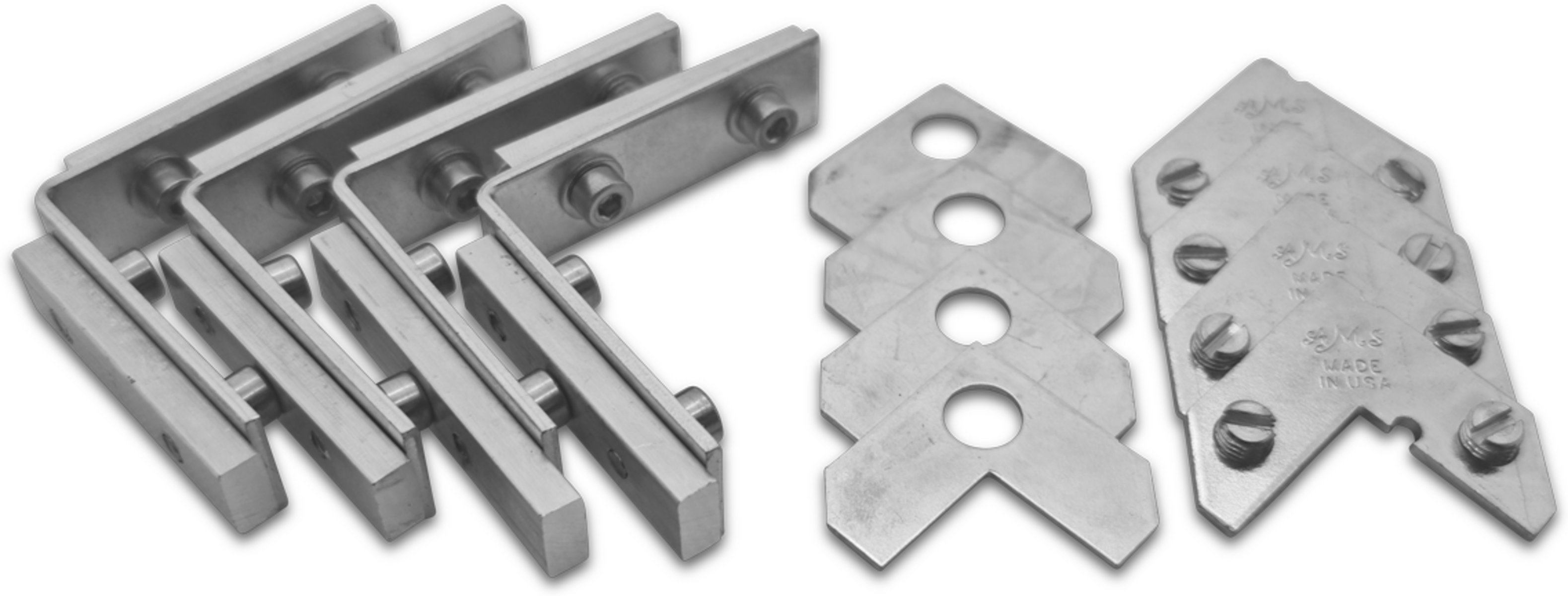 Dieses Set besteht aus 4 Stück Eckverbindern große Nut und 4 Stück Eckverbindern flache Nut