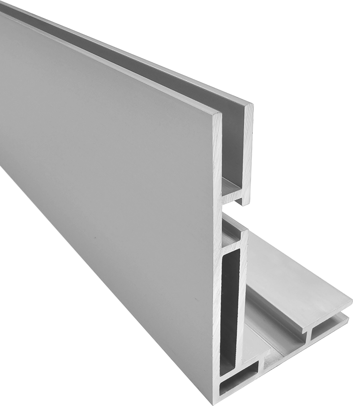Die verstärkte Profilgeometrie ermöglicht größere Spannweiten ohne Durchbiegung — konstruktiv für Formate über 1.500mm Kantenlänge ausgelegt.