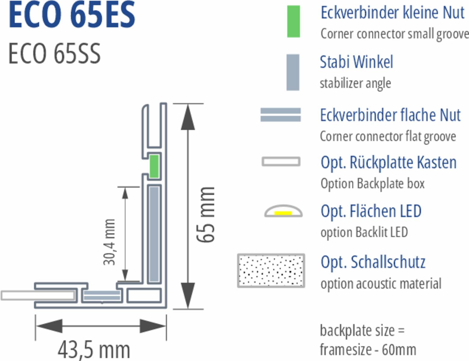 15mm mehr Bautiefe und verstärkte Profilgeometrie für höhere Stabilität. Das Eco 50es ist nur bis 1.200mm Kantenlänge empfohlen.
