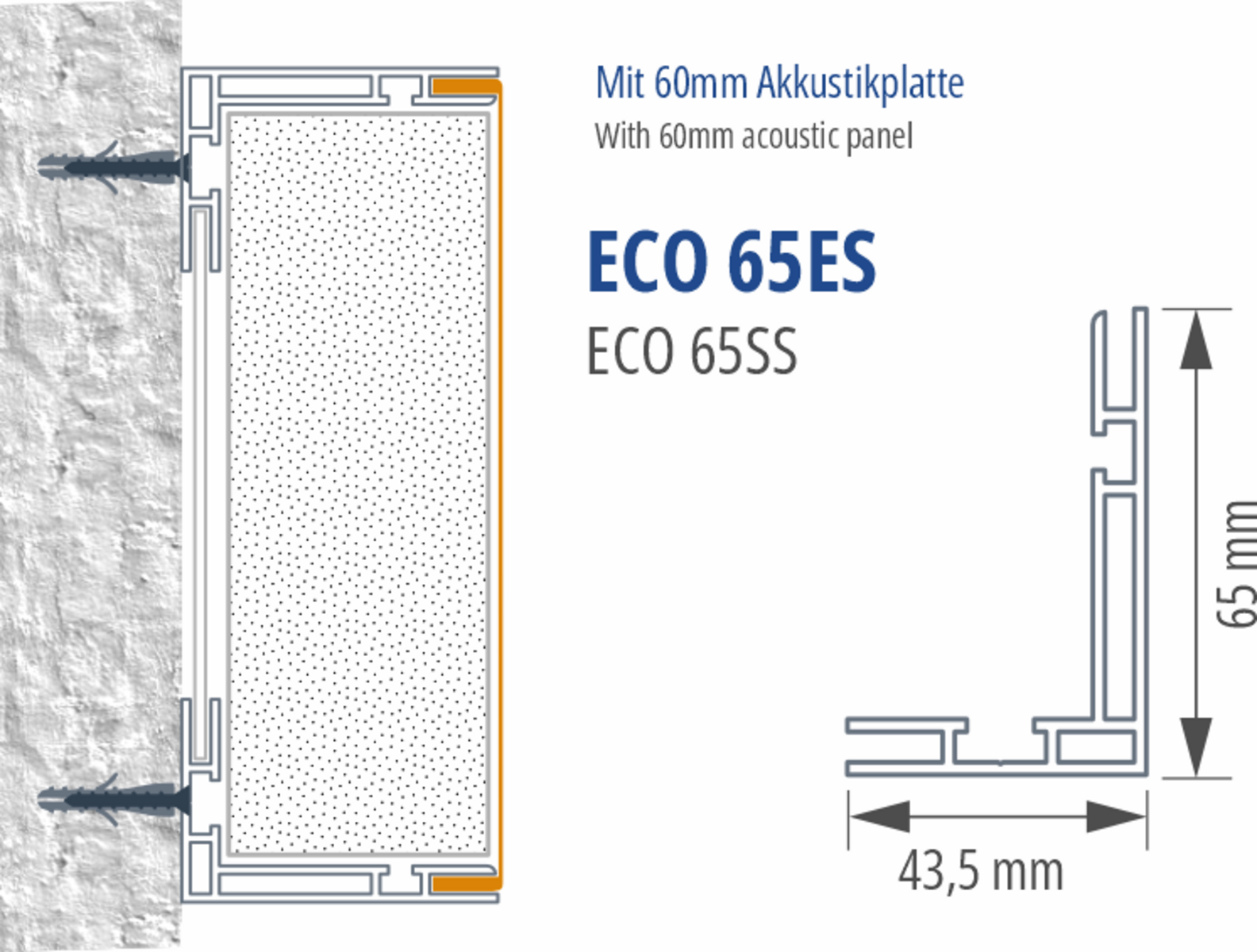 Ja. Das Eco 65es kann die Akustik Platte 60 aufnehmen und funktioniert als Akustikspannrahmen für Schallabsorption.