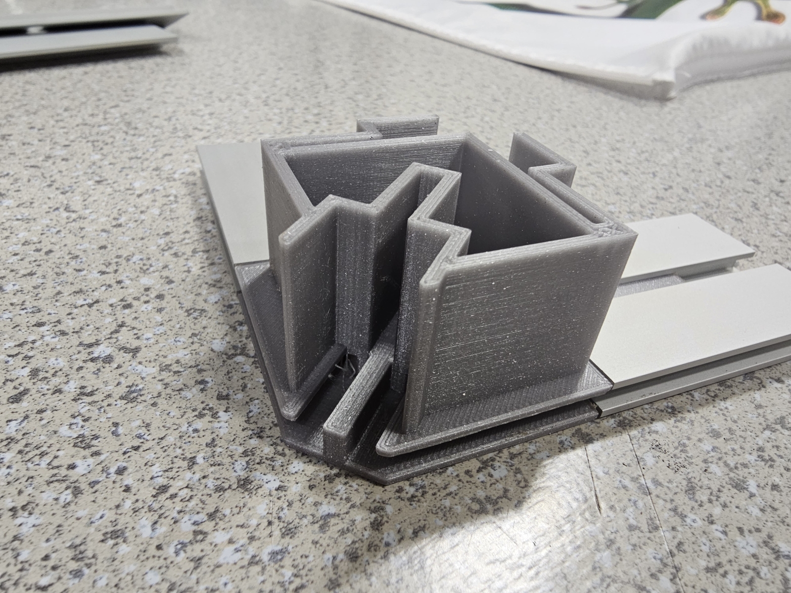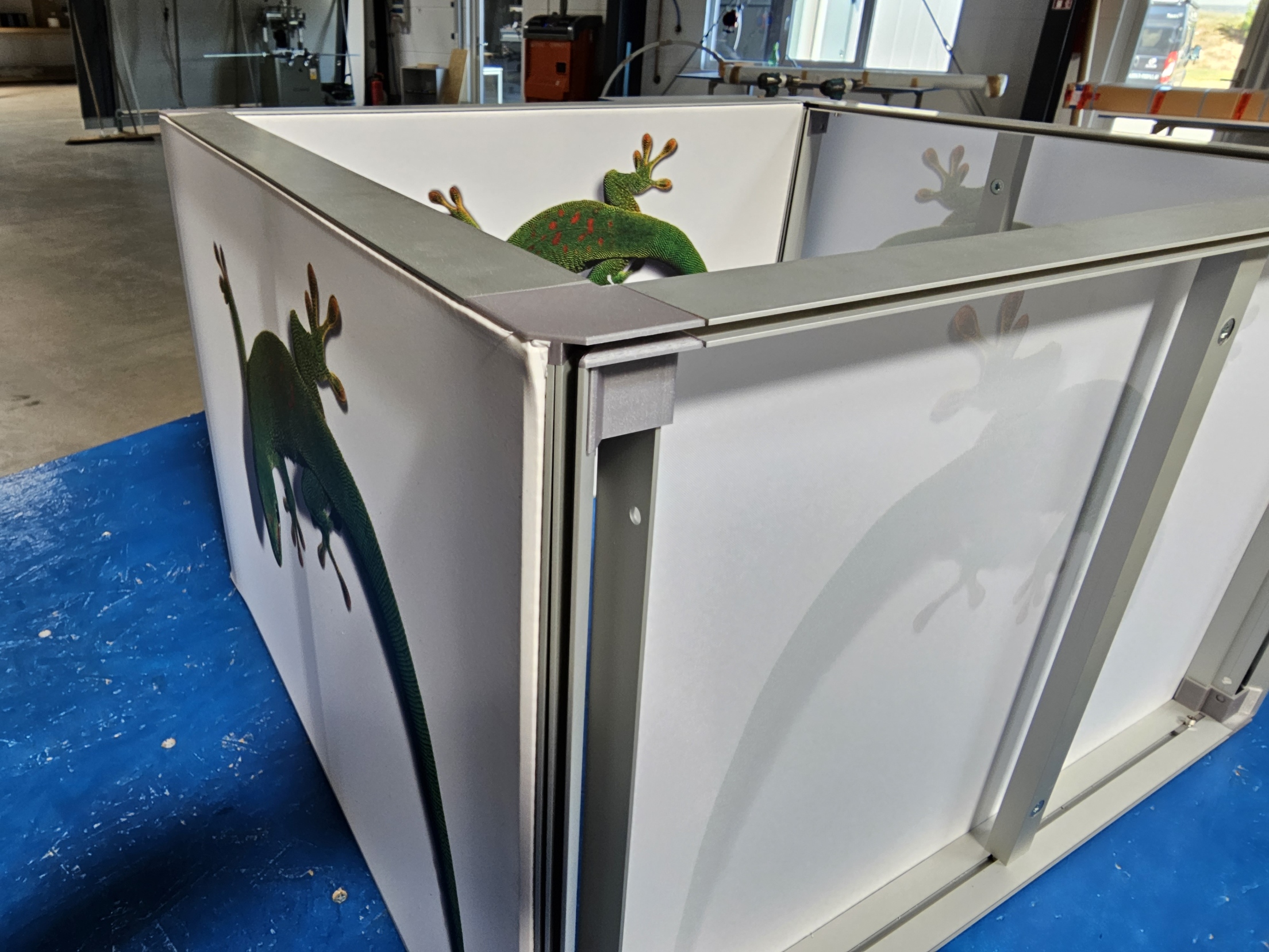 Beidseitiges Gummilippenprofil. Gepresst aus einer weicheren Alulegierung und damit auch bestens geeignet für Verformungen (Biegen). Meist eingesetzt für kleinere, kostengünstige, abgehängte Rahmen oder mit unserem 3D Druck Eckverbinder kombiniert mit dem Nischenprofil als abgehängter Deckenkranz. Auch kleinere beidseitige Aufsteller in Kombination mit unseren Fußlösungen sind eine beliebte Anwendung.