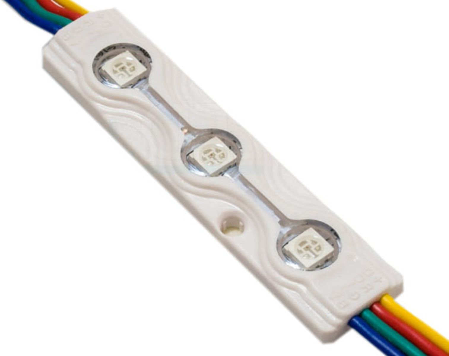 This RGB module with a 120-degree beam angle is designed for effect and colored backlighting. The back is equipped with self-adhesive tape. Power consumption per module is only 0.72 watts. 20 pieces are pre-wired together, which is also the maximum allowed number per power supply line. The modules can be used in lightboxes both indoors and outdoors.