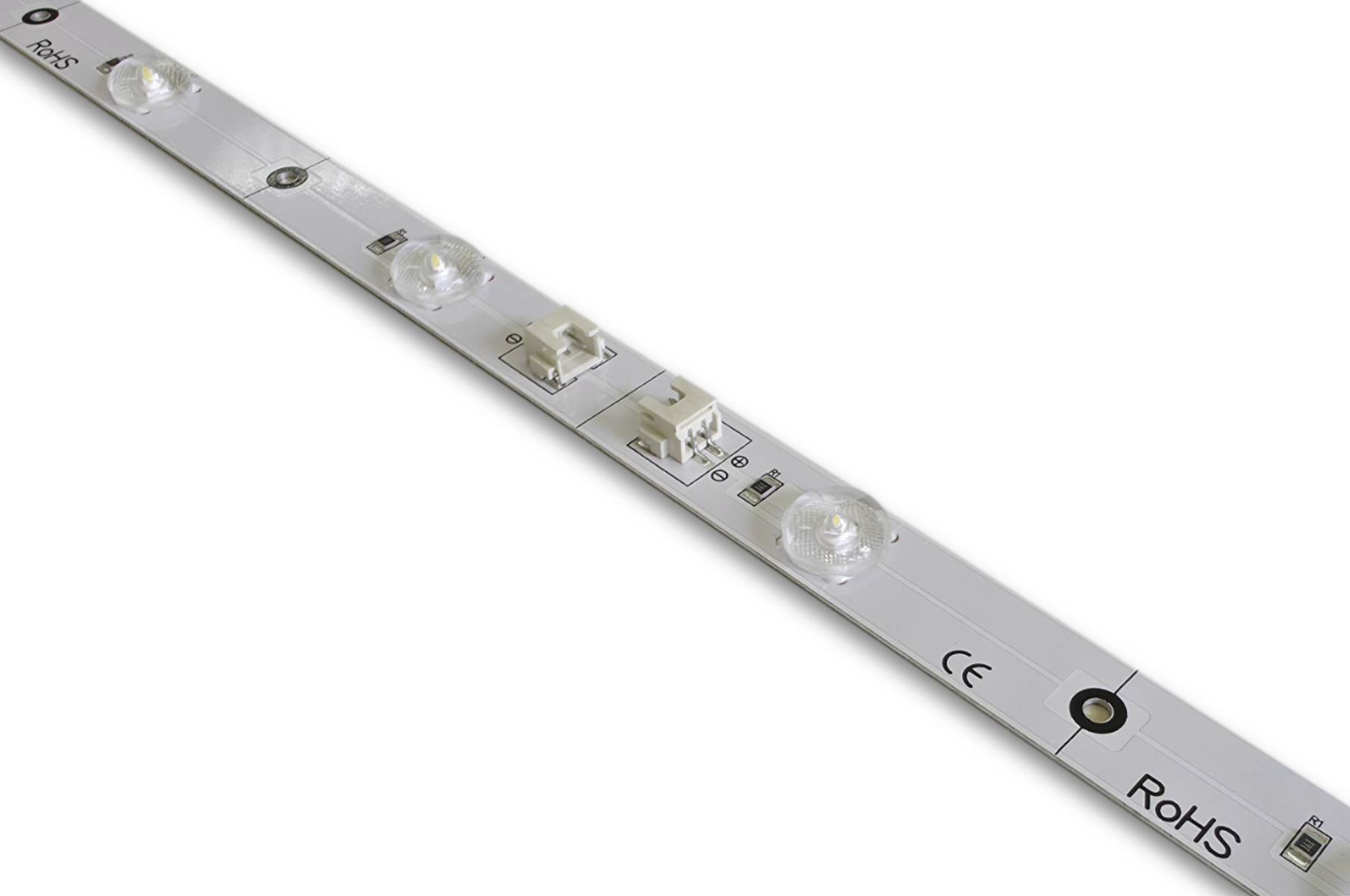 Die 950 mm lange Platine ist alle 8 cm trennbar, was maximale Flexibilität bei der Planung und Montage bietet. Die vollflächige Klebefläche ermöglicht eine schnelle Vorfixierung, während Schraublöcher für dauerhafte Installation sorgen.